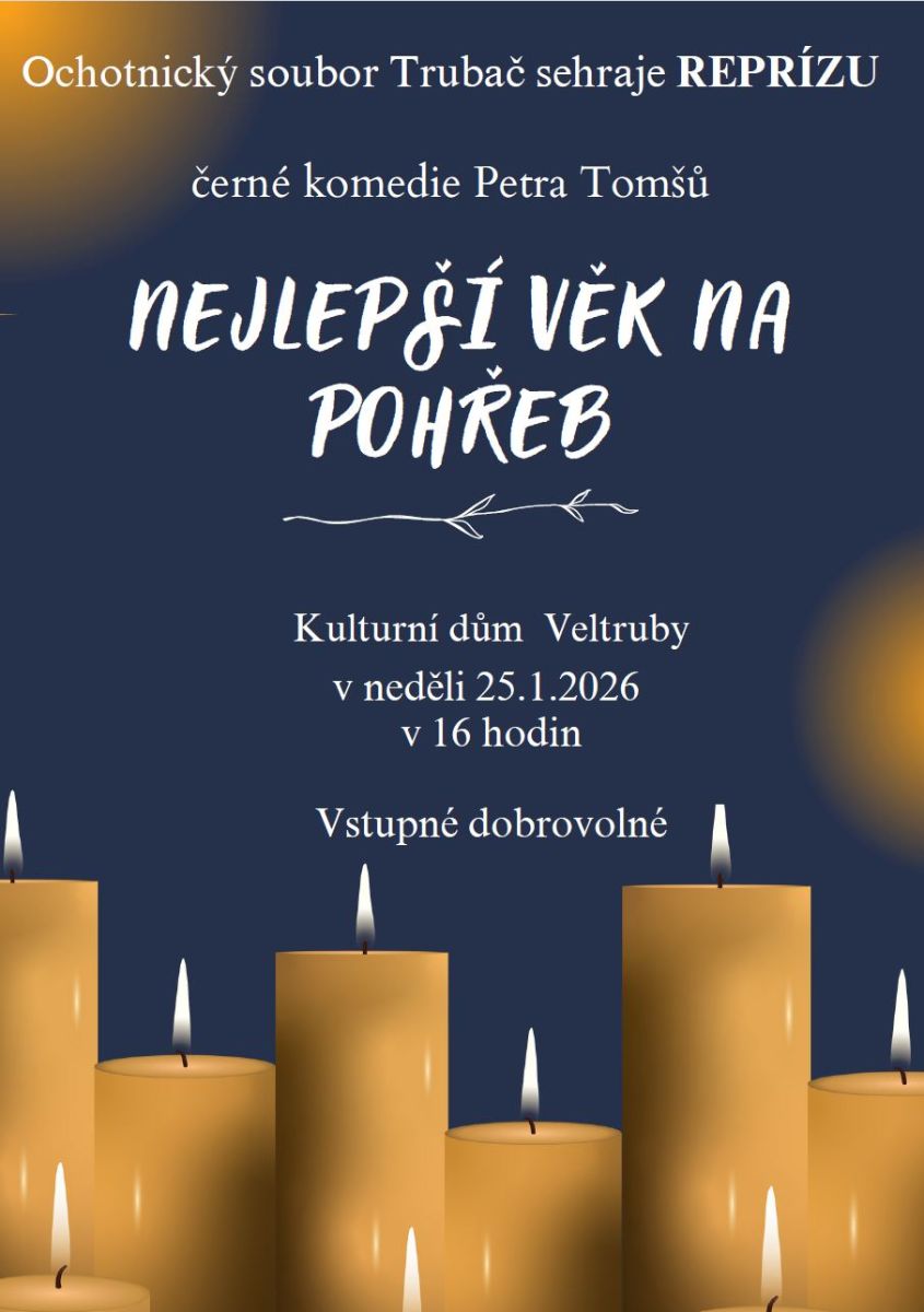 Ochotnický soubor Trubač Vás zve na REPRÍZU černé komedie. Vstupné je dobrovolné.